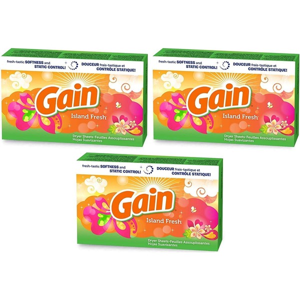 Gain Dryer Sheets - Island Fresh Scent - 34 Count Dryer Sheets Per Box - Pack of 3