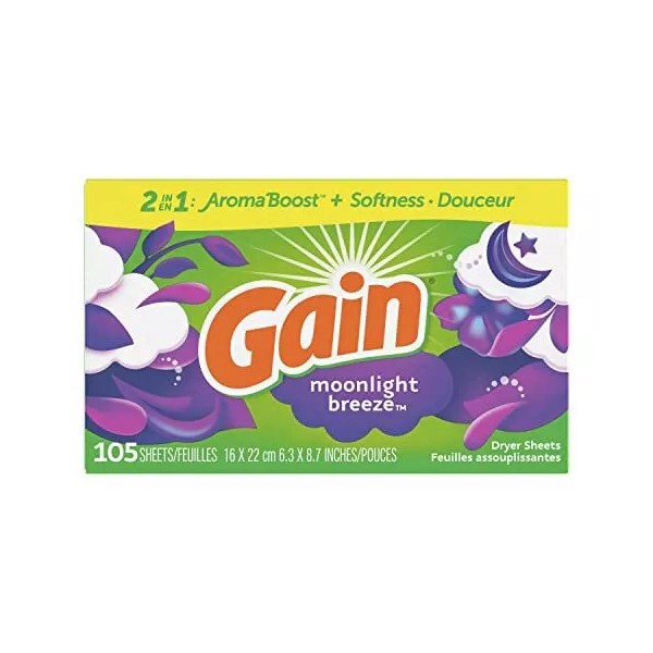 Gain, Fabric Softener Dryer Sheets, Moonlight Breeze, 105 Count (Pack of 1)