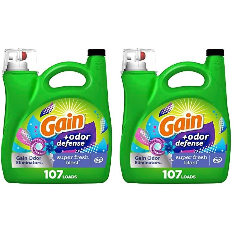 Gain Gain + Odor Defense Liquid Laundry Detergent Super Fresh Blast Scent 154 fl oz 107 Loads HE Compatible (Pack of 2)