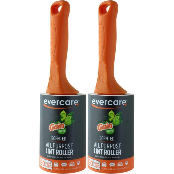 Quickly removes lint, dust, dandruff and pet hair from clothing, bedding and upholstery with gain original scent lint roller. Standard size lint roller includes 90 sheets. 2 PACK
