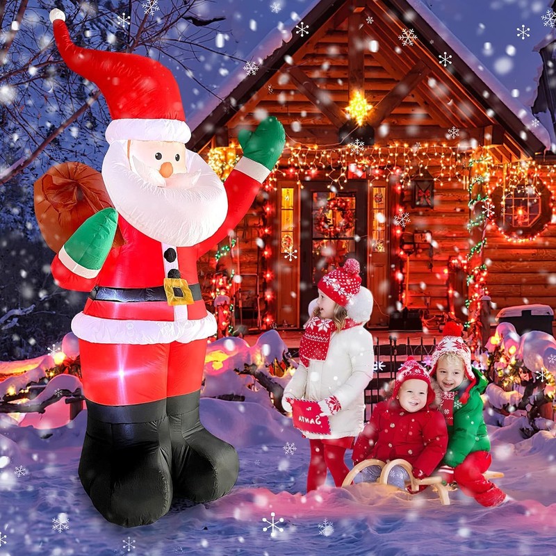 - Tela inflable rápida e impermeable: el soplador de aire súper eólico incorporado puede inflar rápidamente al Papá Noel enchufándolo a una toma de corriente estándar. Fabricado con tejido de nailon grueso mejorado, resistente a la intemperie y al sol, apto para uso en interiores y exteriores, se desinfla para un fácil almacenamiento