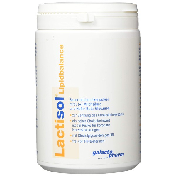 Lactisol lipid balance Contains a special nutrient formula from oats concentrate, and sour milk Molken powder with L (+) lactic acid that targets reduce cholesterol to enjoy. Oat concentrate is rich in beta Glucanen which is responsible for the Cholesterinsenkenden effect. , On the daily consumption of 3g Oat Beta Glucanen per day contributes to maintaining normal blood cholesterol levels. The reduction of cholesterol levels may reduce the risk of Koronaren heart disease (EFSA Journal 2009) 7 (9): 1254. No preservatives just 2 servings daily, easy to use, delicious with strawberry taste. Please note: The drug to improve cholesterol levels, reduce patient consumption inform your doctor. Please note the length of a Abwec
