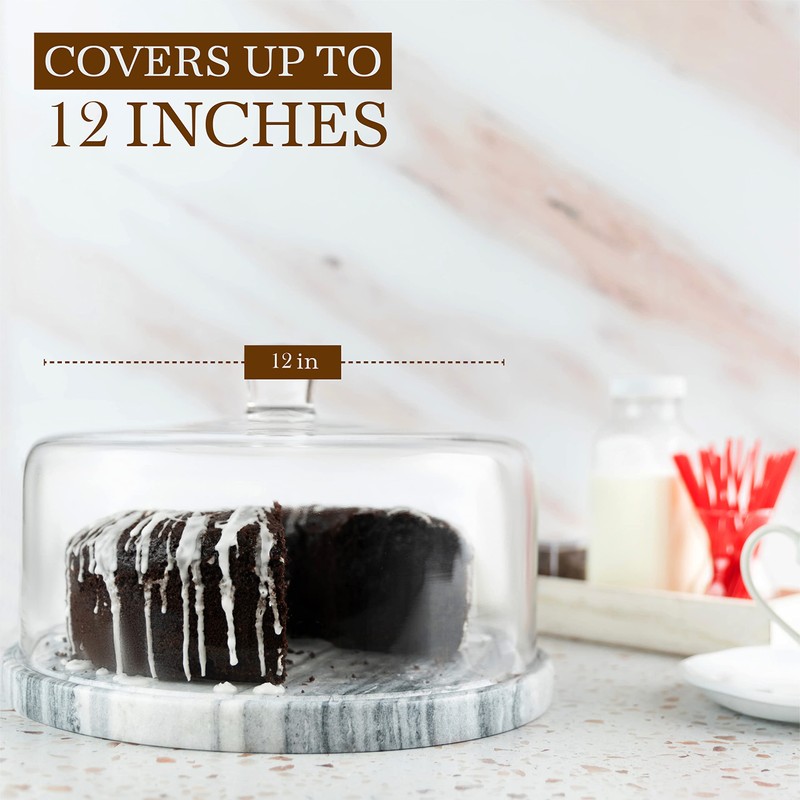 Galashield Marble Cake Stand with Dome | Cake Plate with Glass Dome Cake Cover