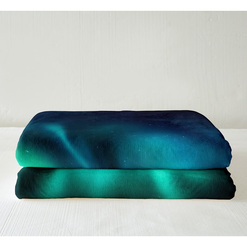 Galaxy Aurora Theme Plush Blanket Starry Sky Aurora Fleece Throw Blanket for Couch Bed Sofa Mountain Landscape Sherpa Blanket Ultra Soft Decor Iceland Scenery Fuzzy Blanket Throw 50"x60"