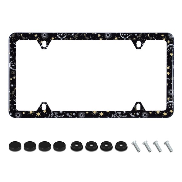 Galaxy Moon and Stars License Plate Frame Starry Sky Planets License Plate Holder Stainless Steel Rust-Proof Auto Parts Decoration with Screws for Men Women License Plate Cover 4 Holes 1pcs