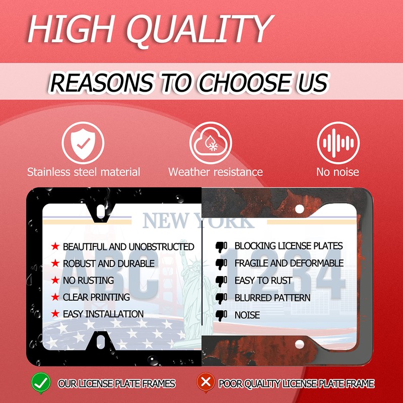 - Will Not Block Your License Plate: Stainless Steel Material, No Rust, Can Withstand Extreme Weather, Environmental Protection, Easy To Clean And Maintain, Not Easy To Deform, The License Plate Frame Is Stronger, Prevent Noise, Protect Your Vehicle From Scratches By The License Plate, Can Long-Term Use.