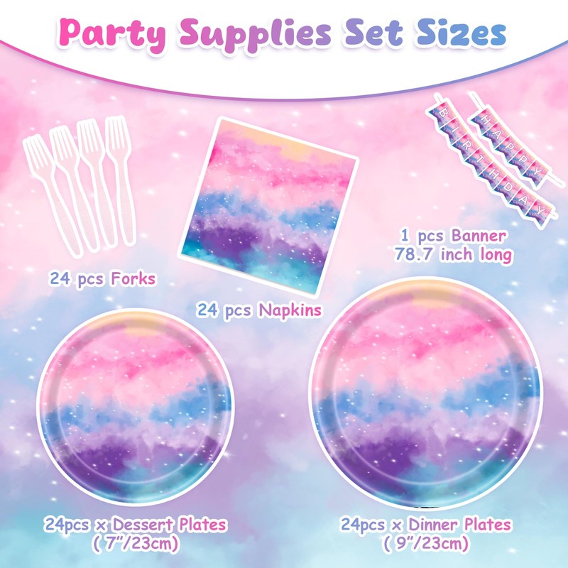 - Package included: You will receive 24 9" paper plates, 24 7" paper plates, 24 6.5" napkins, and 24 plastic forks, 1 banner. each set can serve 24 guests.