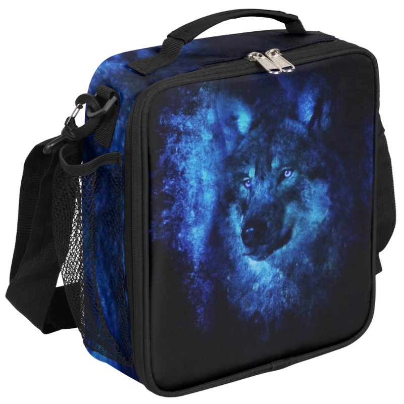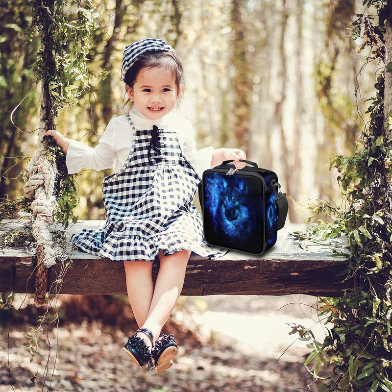 Galaxy Wolf Lunch Box for Kids Boys, Insulated Lunch Bag Reusable Thermal Lunchbox Cooler Tote Handbag with Removable Adjustable Shoulder Strap for Adults Women Men Picnic Work School