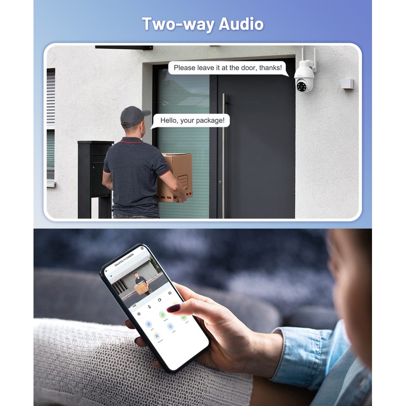 - 【2-way Audio & Multi-user Access】Equipped with a built-in microphone & speaker that allows you to talk and listen to your baby or pet. Our app allows you to create several family accounts and share the dome cameras with your family and friends. This PTZ camera also supports Alexa and RTSP.
