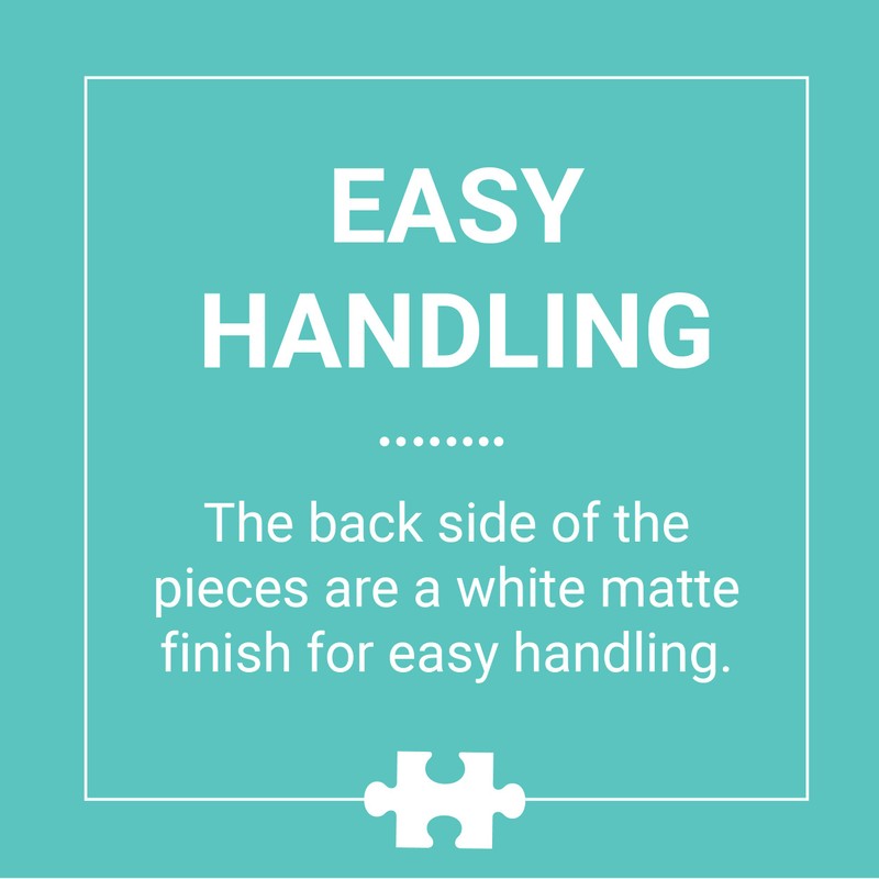 - EASY HANDLING – The 1000 puzzle pieces are thick and sturdy, and the back sides are a white matte finish. The completed puzzle measures 27” x 20" and the box measures 8.25” x 11.25” x 2".