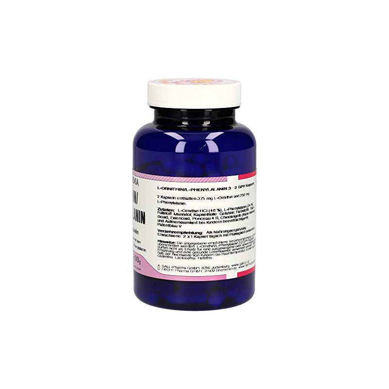 Includes 187,5 mg L Ornithin & 125 mg L and 700 mg of Phenylananine in a hard gelatine capsule.