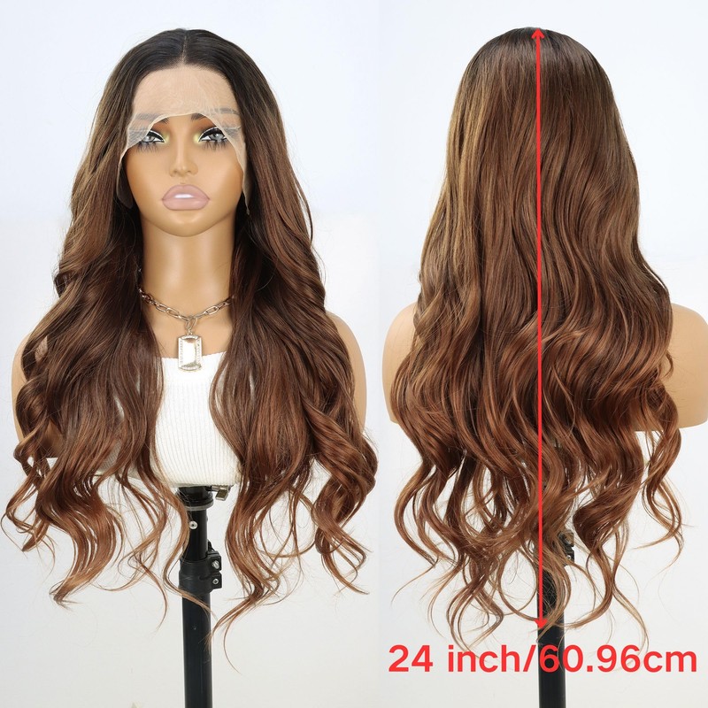 Synthetic Lace Front Wigs for Women Body Wave Pre Plucked Pre Cut HD 13X4 Front Lace Ombre Wig Middle Part 24 Inch Length for a Stunning LookMaterial: Similar human hair fiber