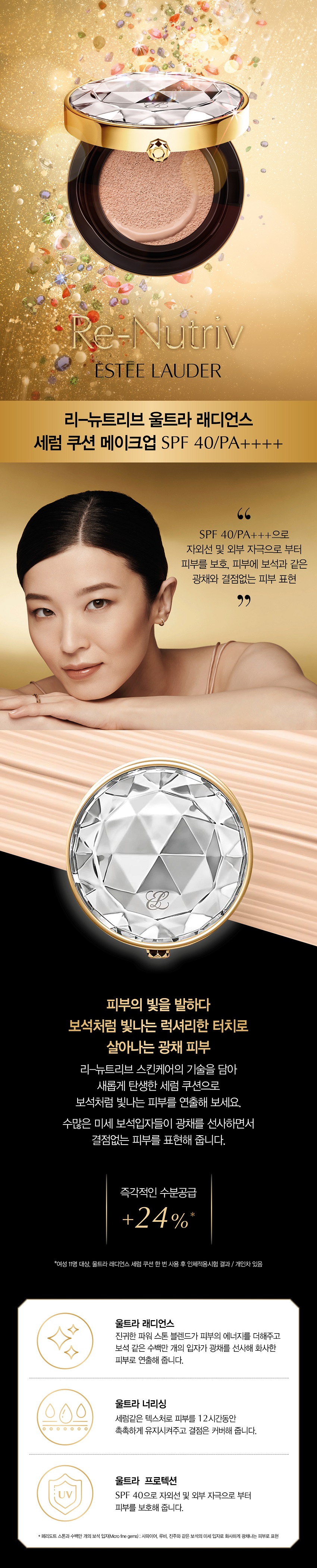 - 울트라 래디언스 : 진귀한 파워 스톤 블렌드가 피부의 에너지를 더해주고 보석 같은 수백만 개의 입자가 광채를 선사해 화사한 피부로 연출해 줍니다.