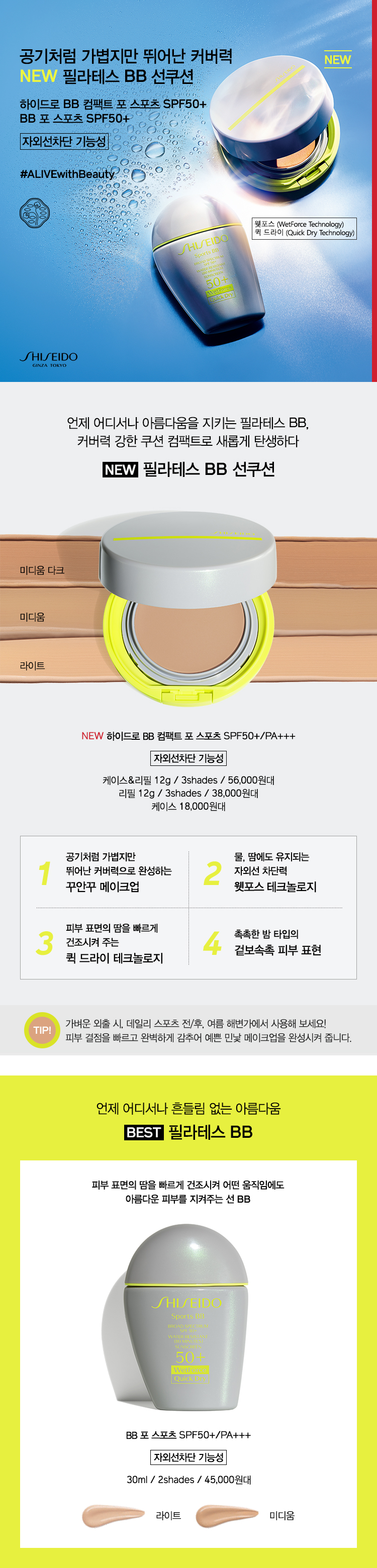 하이드로 BB 콤팩트 포 스포츠, 필라테스 BB 선쿠션 케이스입니다.