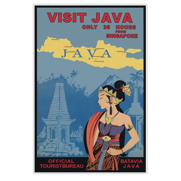 Gallery Prints Visit Java Travel Print - Measures 24" Wide x 36" high (610mm Wide x 915mm high)