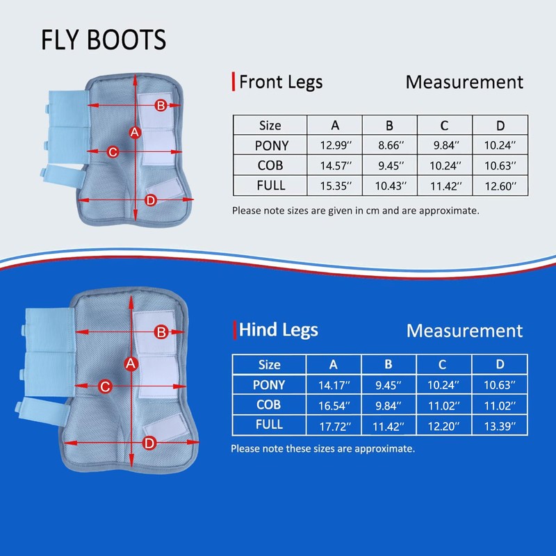 - Contoured Fit: The fly boots' contoured shape is a great fit for horse legs. Features fleece edge for optimal comfort. Great for preventing harsh rubbing and chafing.