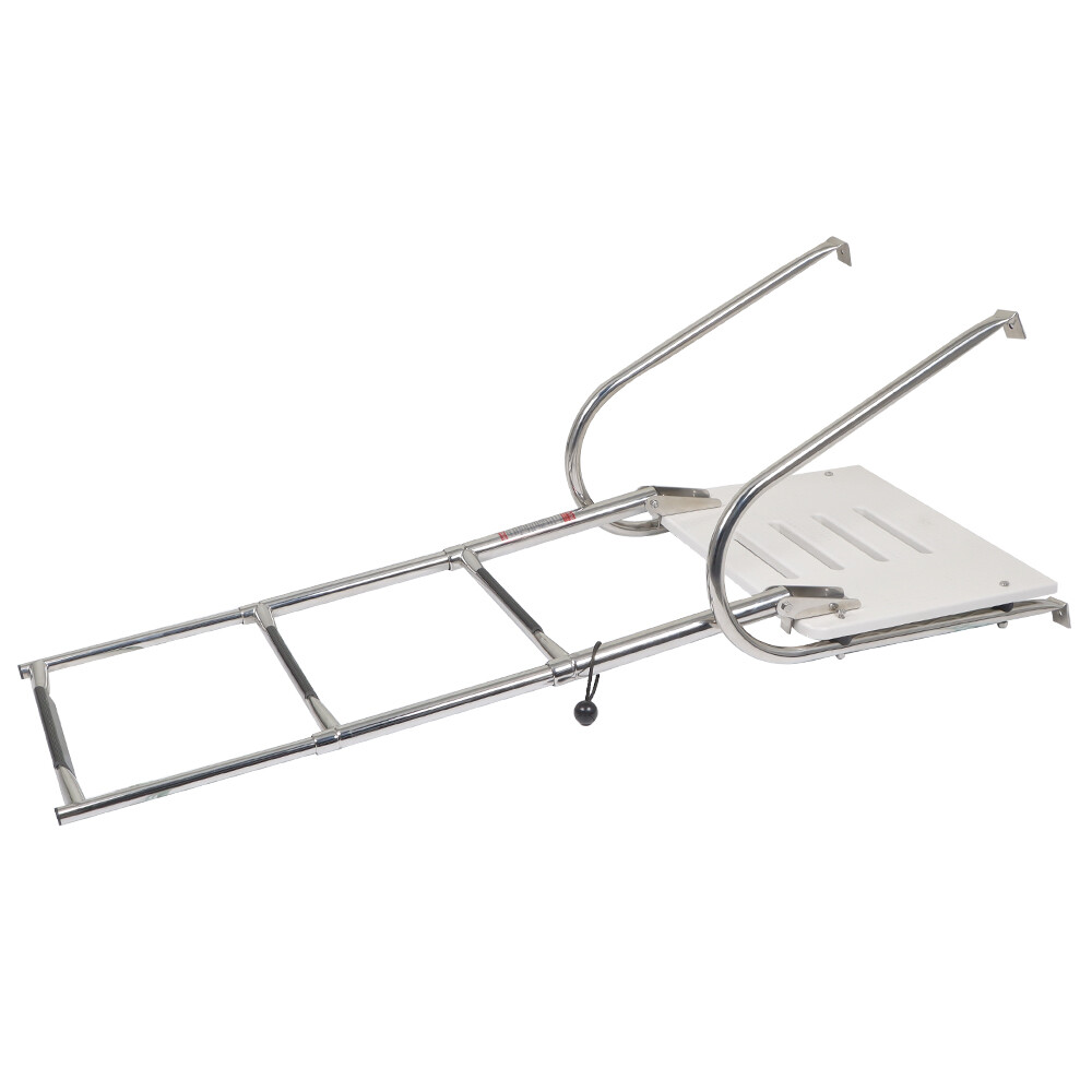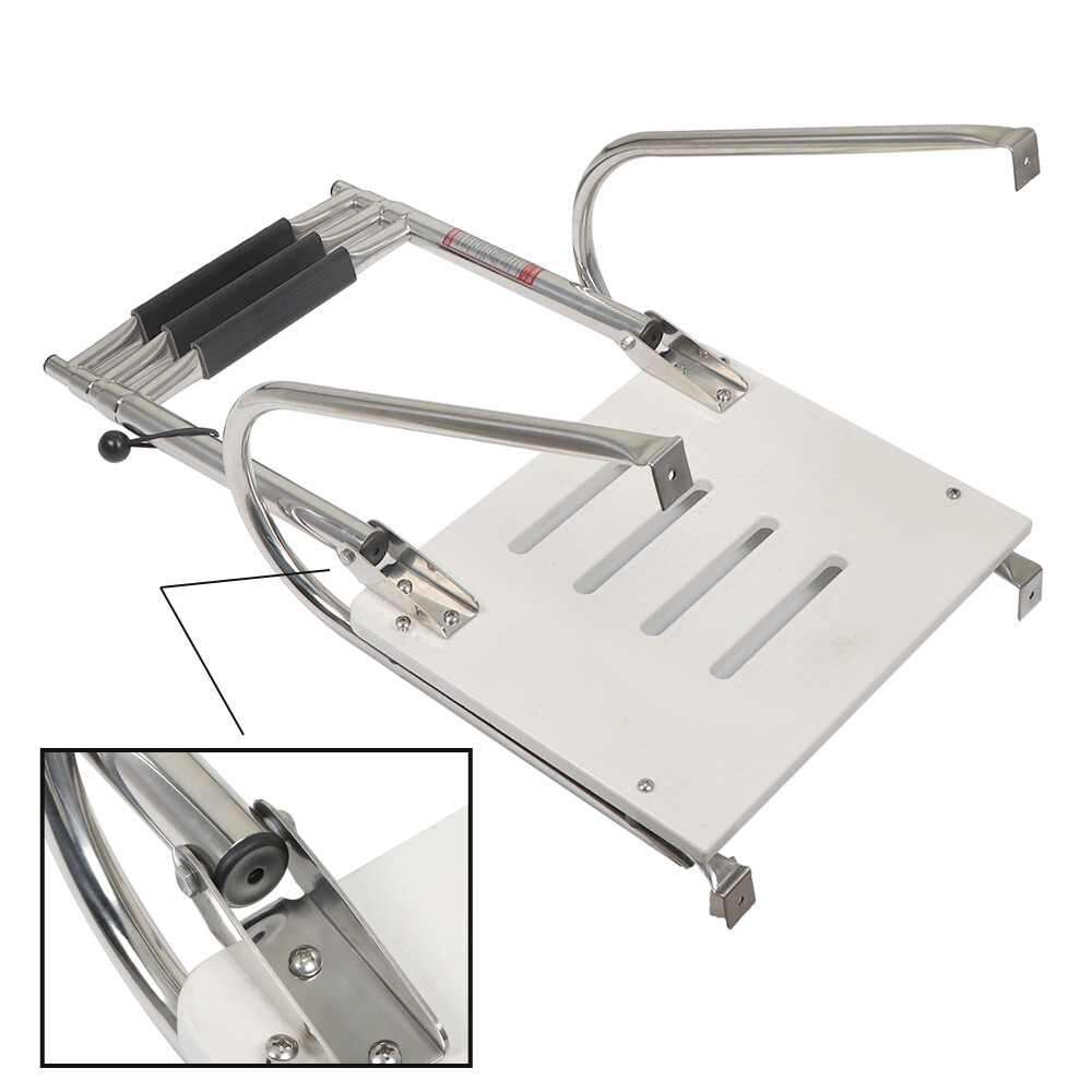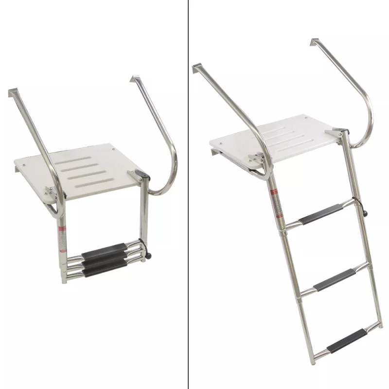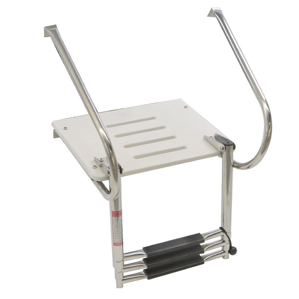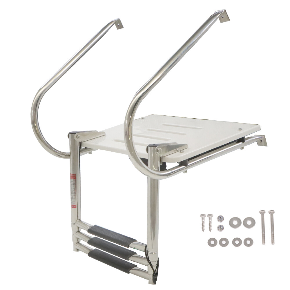 Fitment: Stainless Steel 3 Step in-Board Outboard Transom Platform with 2 Handrails Marine Telescoping Boat Ladder with Fiberglass Swim Platform Collapsible Step Ladder for Swimming Pool Pontoon Dock