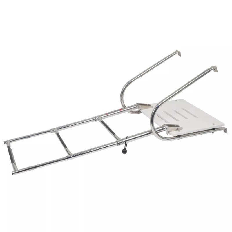 Stainless Steel 3 Step in-Board Outboard Transom Platform with 2 Handrails Marine Telescoping Boat Ladder with Fiberglass Swim Platform Collapsible Step Ladder for Swimming Pool Pontoon Dock
