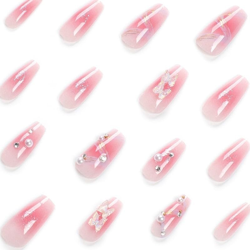 GALSPRO Medium Press on Nails - Set of 24 Fake Nails with Designs in 12 Different Sizes for Perfect Fit, Cute False Nails Kit for Women with 0.07oz Nail Glue (PINK DREAM COFFIN SHAPE, Medium)