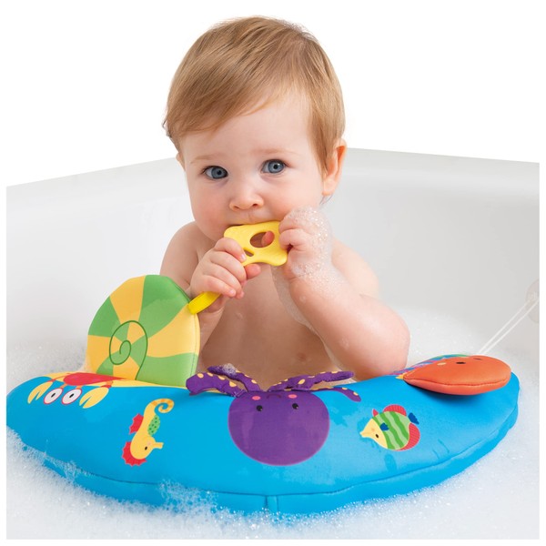 - Safe, Durable and Easy to Clean: Bath Time Playcentre floats on water and sticks to the sides of the bath, securing the toy for safe play. The easy-to-remove fabric cover is machine washable, and the cushion deflates and folds up for storage