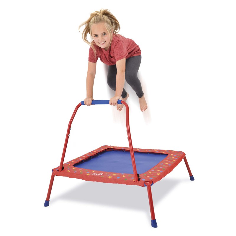 - Toddler trampoline with easy grip handle encourages children to exercise and keep fit