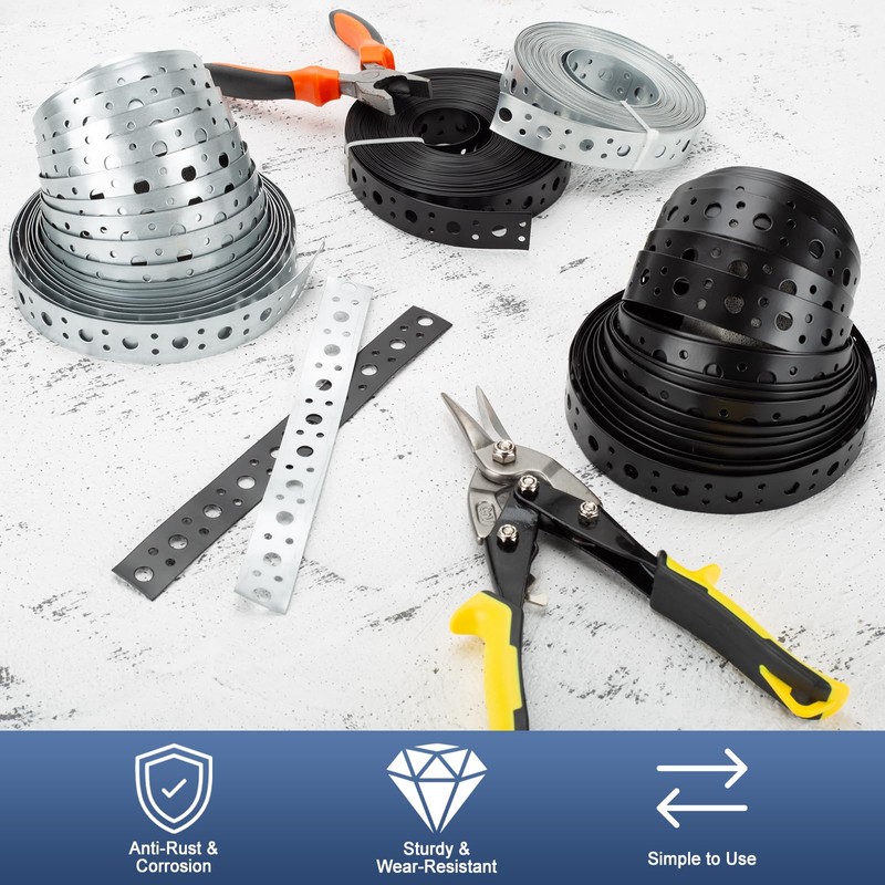 - 【Versatile Use】Spanning 65 feet (20 meters) and featuring a practical thickness of 0.02 inches (0.6 mm), our metal straps are adept for a multitude of applications—from securing pipes and ductwork to managing wires and hoses. Its versatility makes it indispensable in residential, commercial, automotive, and garden settings alike.