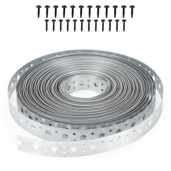 Galvanized Metal Pipe Strap 1-Inch x 65 Feet 0.6mm Thickness for HVAC & Plumbing Support Metal Strapping with Holes Duct Securing Straps with Black Screw