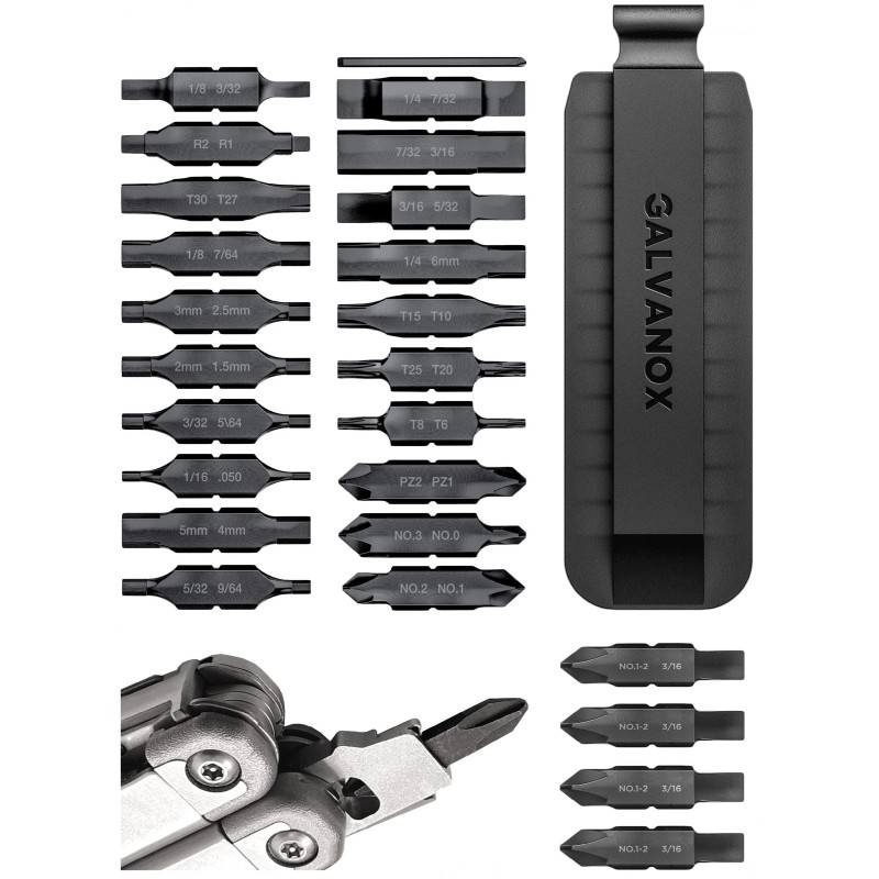 Galvanox 25PC Flat Bit Set for Leatherman – Double-Ended w/ Holder Included