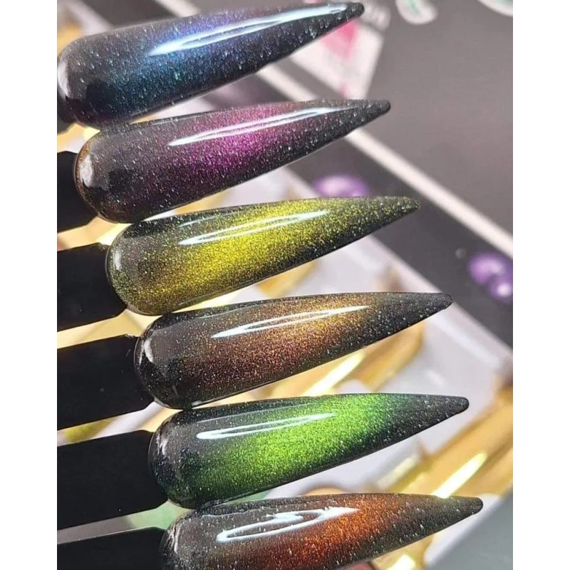 Transforma tu manicure en una obra de arte magnética y sofisticada con la exclusiva Gama Cat Eye de Fantasy Nails 🌌🐾 . Este set de 6 esmaltes semipermanentes te permitirá crear un efecto ojo de gato hipnótico, lleno de brillo y profundidad, que cambia con la luz ✨ .