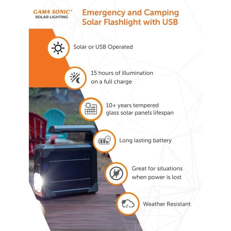 GAMA SONIC Solar-Powered Emergency Flashlight and Camping Lantern with USB Charging Port, 1000 Lumens