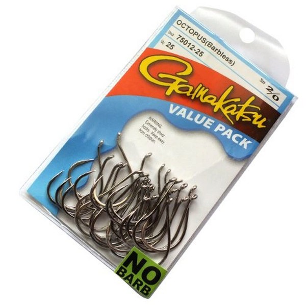 Gamakatsu Barbless Octopus Fishing Hook, Pack of 25, Black