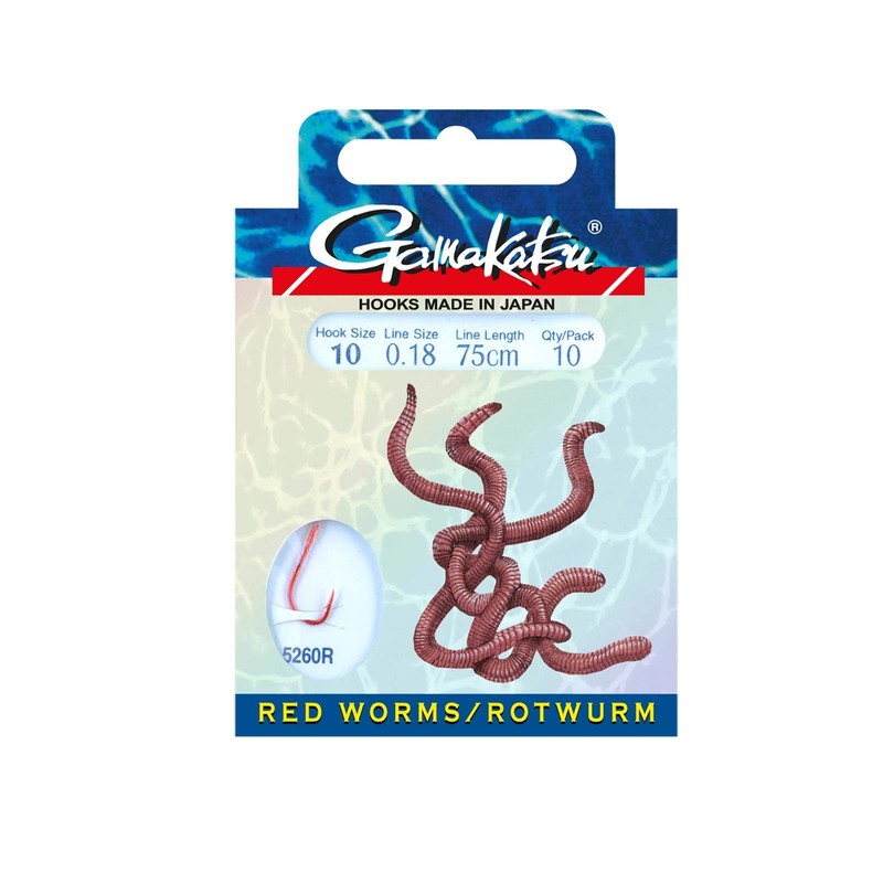 Gamakatsu BKD-5260R Red Worm 6 Tied Hooks (Pack of 10)
