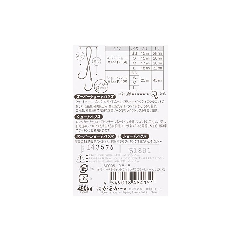 - Gamakatsu F-129 Saber Point Hooking, M Short Harris with Thread, Assist Hook,
