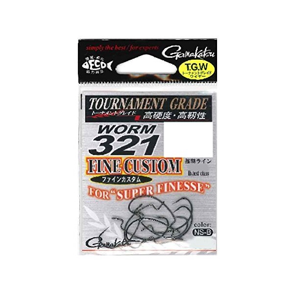Gamakatsu Worm Hook Worm 321 Fine Custom 6 No. 8 NS Black 67805