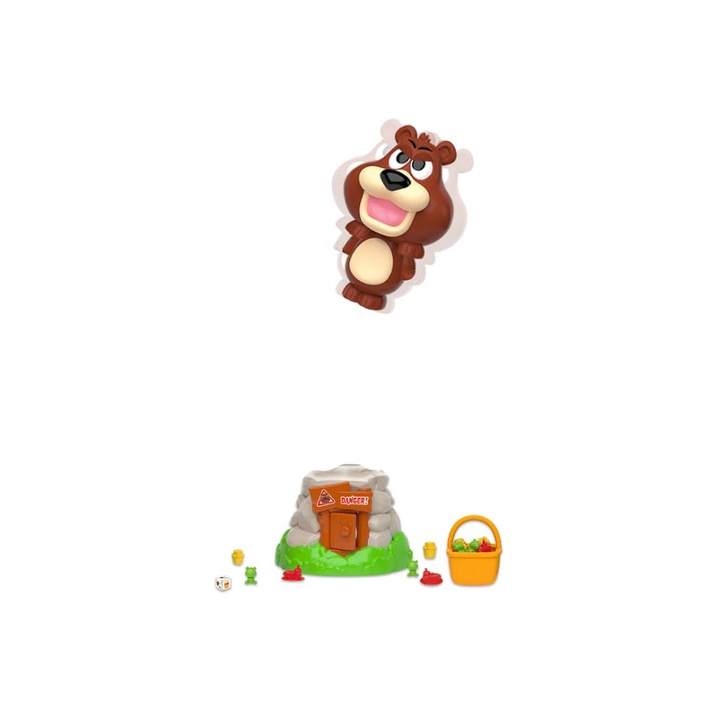 - Papa ours s’est endormi en oubliant son panier ! Lance le dé, ouvre la porte et titille son ventre ! S’il reste endormi, les oursons peuvent voler de la nourriture dans son panier !