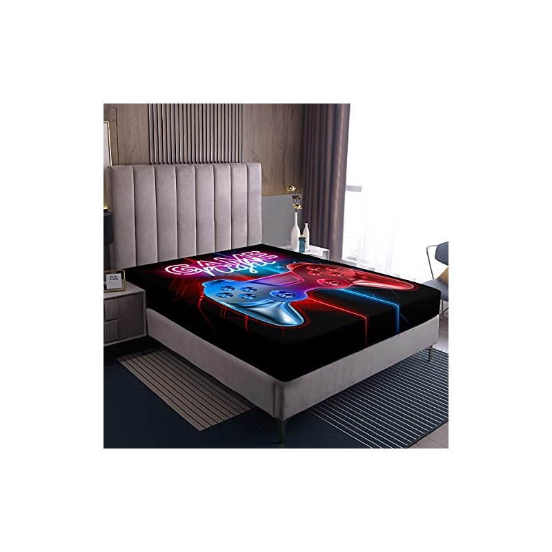 Game Theme Pattern Fitted Sheet 90 x 200 cm Modern Game Fitted Sheet for Children Boys Men Bedroom Decorative Box Spring Bed Sheet Video Game Controller Action Buttons Colourful Print
