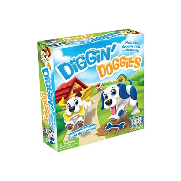 - Product specification: Package contains (1) Game Zone Diggin' Doggies Board Game. Game includes 12 bones in four colors, one die, and four plastic doggy playing pieces. Updated version of International Playthings Award Winning Diggity Dogs. Great for 2-4 players. Ages 3 and up