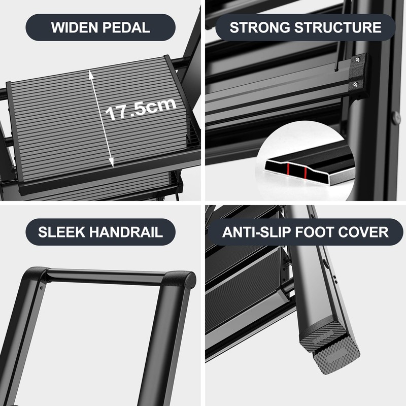 With modern design, our foldable stepladder stool can fit in your house like a furniture.