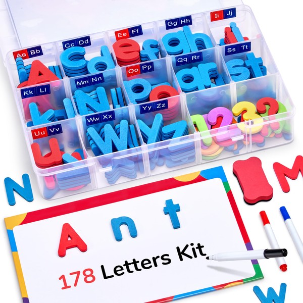 Gamenote Classroom Magnetic Letters Kit 178 Pcs with Double-Side Magnet Board - Foam Alphabet Letters for Kids Spelling and Learning
