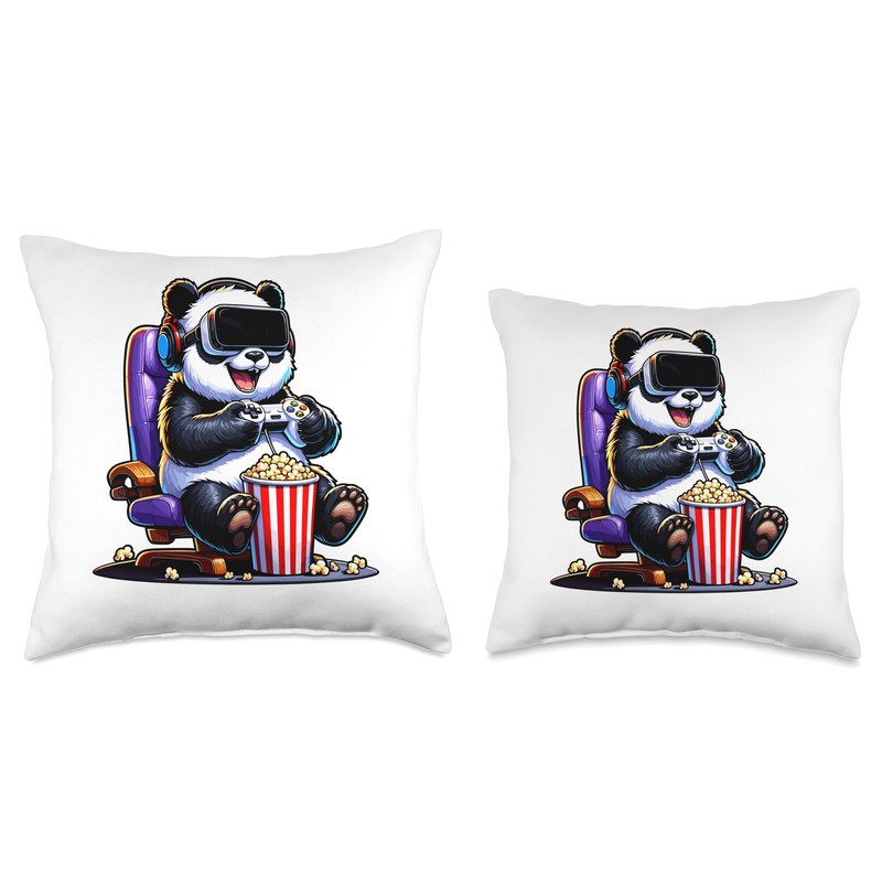 Gamer Panda Popcorn Gaming Chair Headphones Games Player Throw Pillow