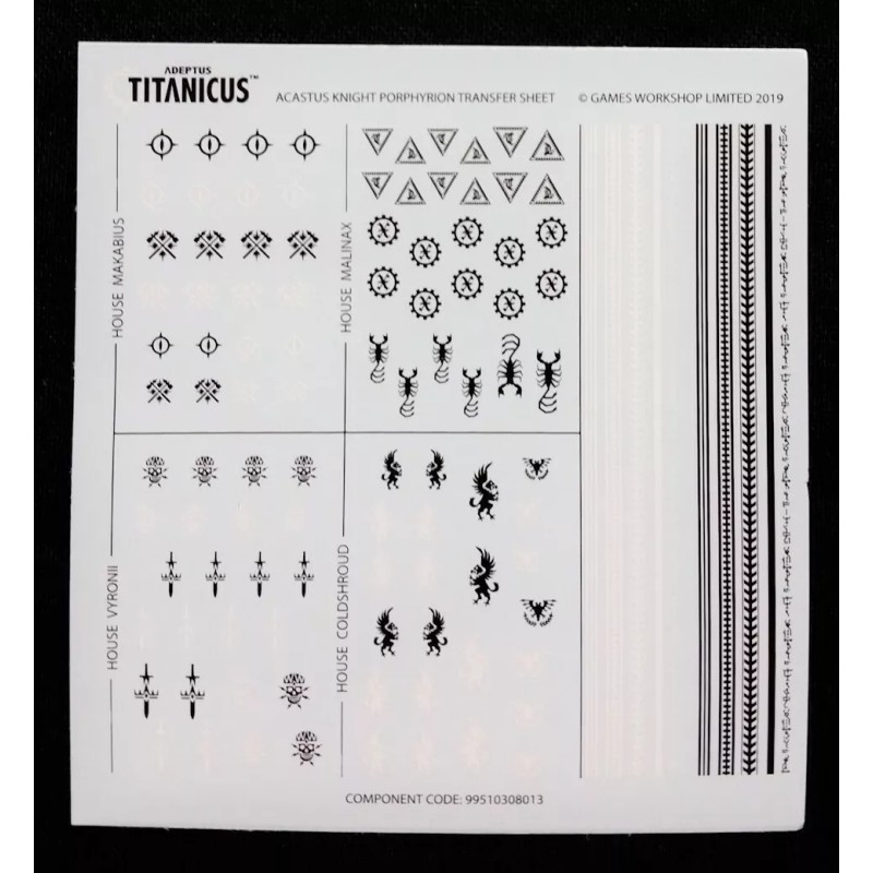 Games Workshop Acastus Porphyrion Transfer Sheet Adeptus Titanicus Knight Warhammer 40K Horus
