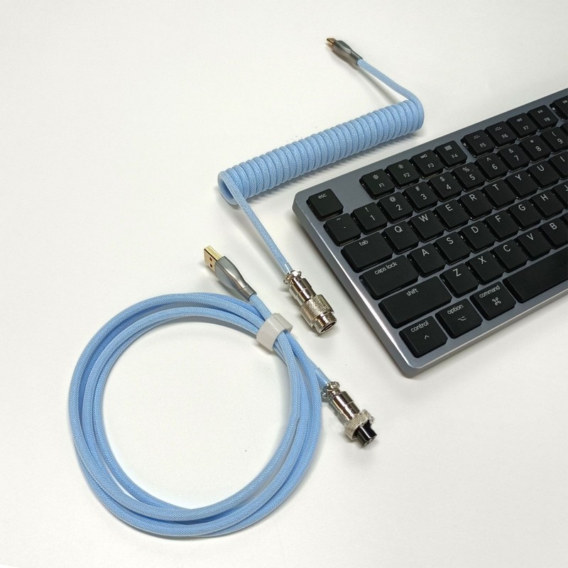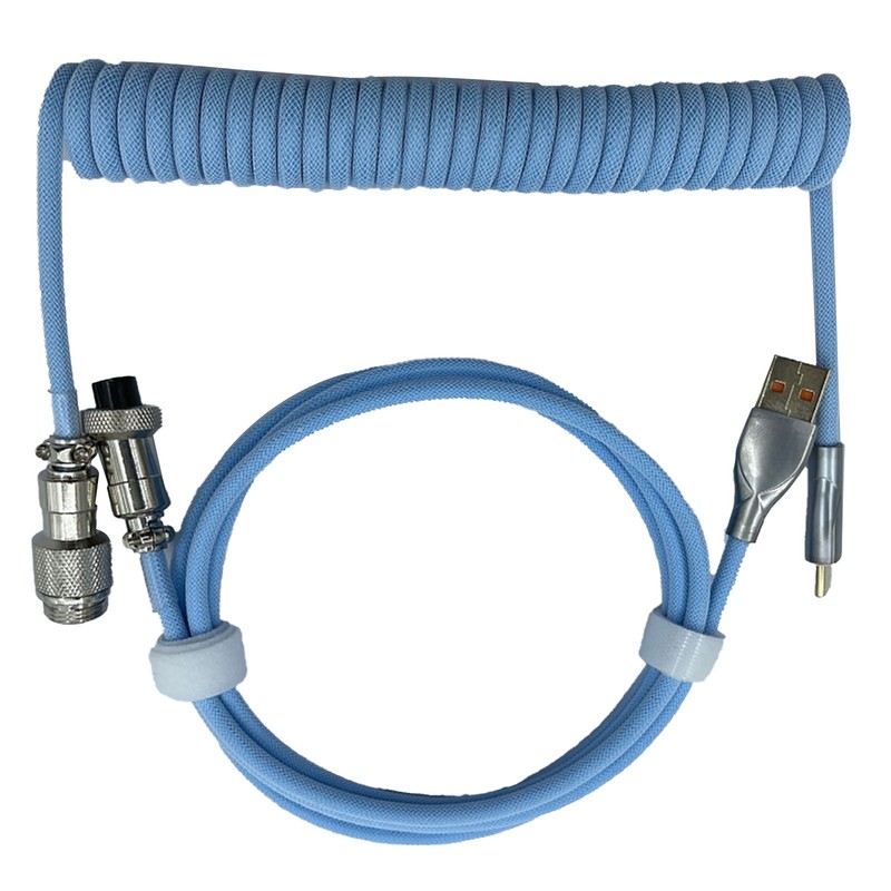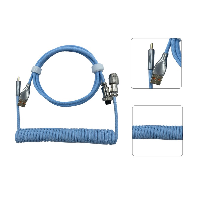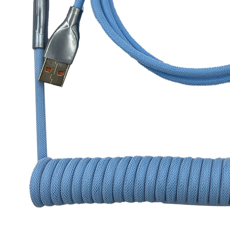 Gaming Keyboard Cable Professional Retractable Sturdy Connector Coiled Keyboard Cable for Mechanical Keyboard Light Blue