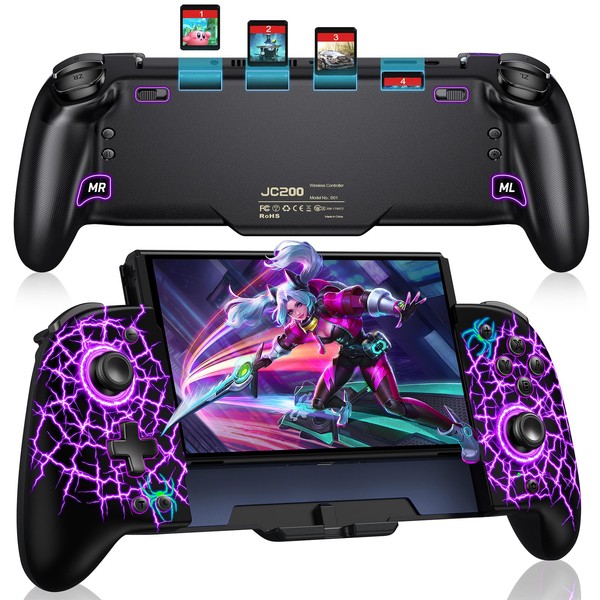 GAMSINGY Kabellos Handheld Switch Controller, Cooles RGB-Licht Switch Controller Griffe mit 4xSpiele Karten Slots, Switch Spiele Zubehör für Switch/OLED Konsolen