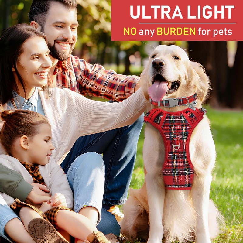 - COMFORTABLE MATERIAL: Adjustable pet harness features colorful plaid and breathable mesh fabric, comfortable to wear and will not stick to the pet's hair. Even if your pet wears it all day, he won't feel any discomfort. For daily walking or running, it is a very easy thing to do. Besides, this is a four seasons harness, it keeps the pet cool on hot days and keeps the pet warm on cold days.