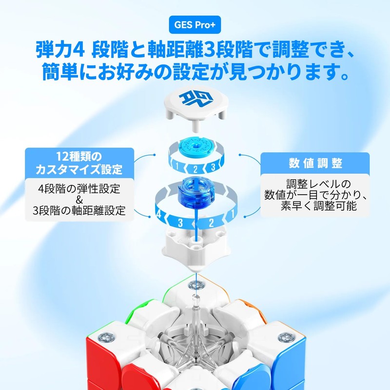 - (12 Types of Customization Available) Numerical adjustment levels, adjustable between 4 axis distance (centerpiece movable distance) and 3 elastic levels. It can be adapted to a variety of rotating styles and feelings of your choice. Unleash your speed with the GAN Cube