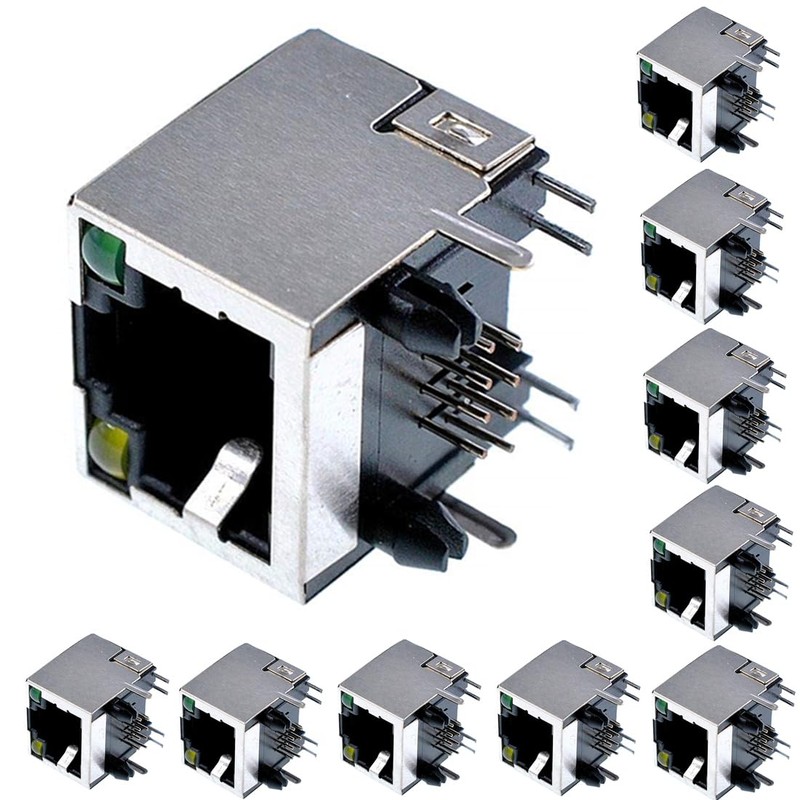 Ganasome 10 Pcs Shielded RJ45 8P8C 90 Degree Angle Network Modular Connector for PCB - Enhanced Connectivity with LED Indicators