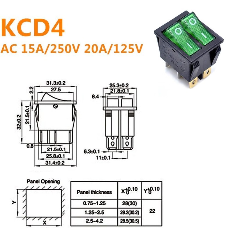 Ganasome 2pcs KCD4 Green Light 6P Terminals ON/Off Double SPST 2 Way Snap in Boat Rocker Switch - AC 250V 16A