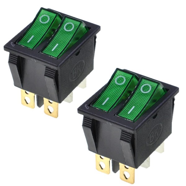 Ganasome 2pcs KCD4 Green Light 6P Terminals ON/Off Double SPST 2 Way Snap in Boat Rocker Switch - AC 250V 16A