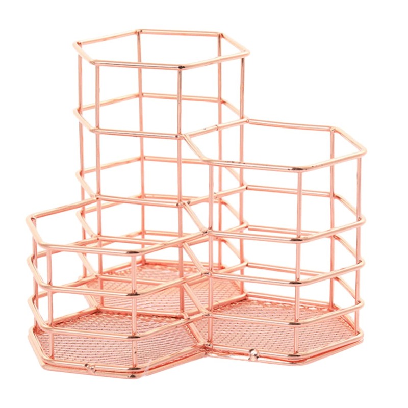 GANAZONO Rose Gold Multifunctional Iron Pen Holder Elegant Desktop Organizer ...