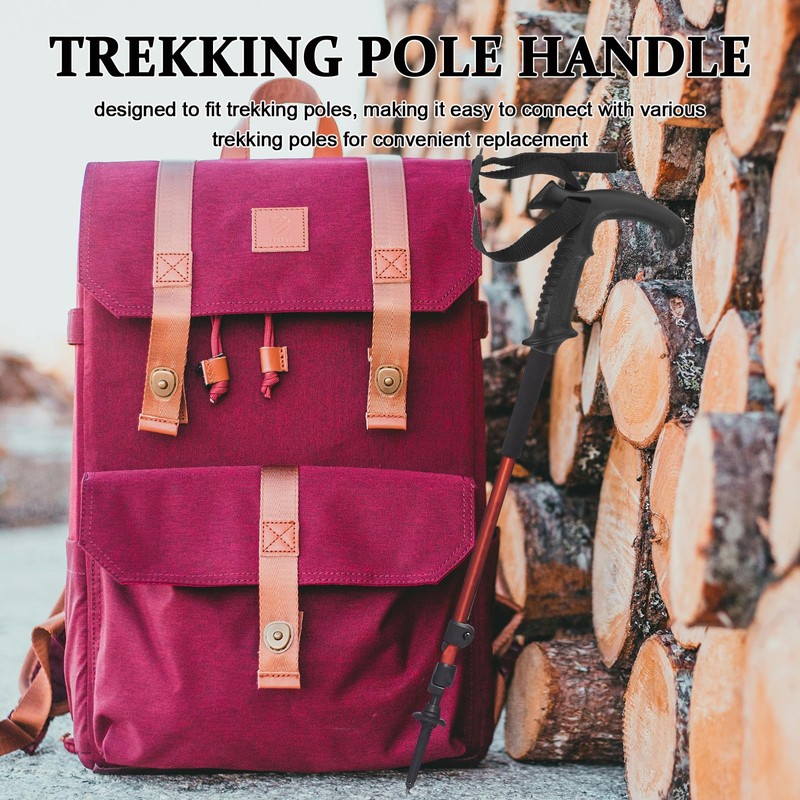 GANAZONO Trekking Pole Handle: Black T-Shape Handle for Trekking Poles Hiking Sticks Walking Canes - Replacement Plastic Grip with Wrist Strap for Climbing Mountaineering